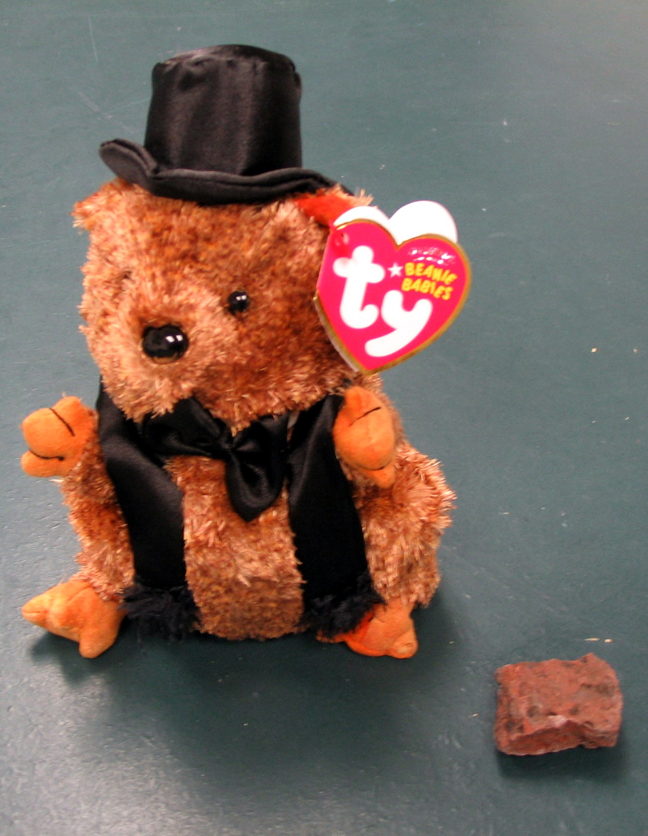 We also stopped in The Thoughtfulness Shop (about where Phil Connor punched Ned Ryerson) and bought a dated Ty Beanie Baby of Punxsutawney Phil (seen here with a piece of brick I picked up from the street around the square. We heard some guy telling a crowd that bricks from Woodstock have been sold on eBay for $100, but there are none for sale today.)