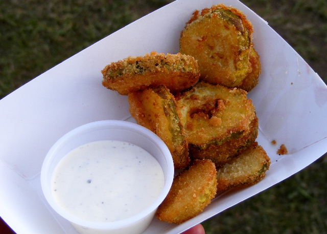 They were very tangy but tasty, and the ranch dressing was a good addition. When I was done, I went back to the booth and thanked the woman again and told her the pickles were very good.