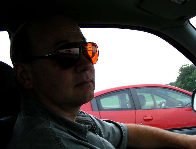 We got back on the interstate and soon ran into the perpetual traffic jam on northbound I-65. We were stuck in stop-and-go (mostly stop) mode for the better part of an hour with no end in sight. We weren’t the only ones frustrated. Here’s a shot my daughter took of the passenger in the next car.