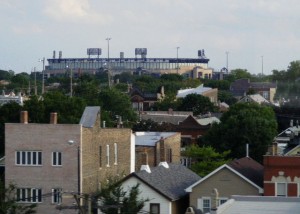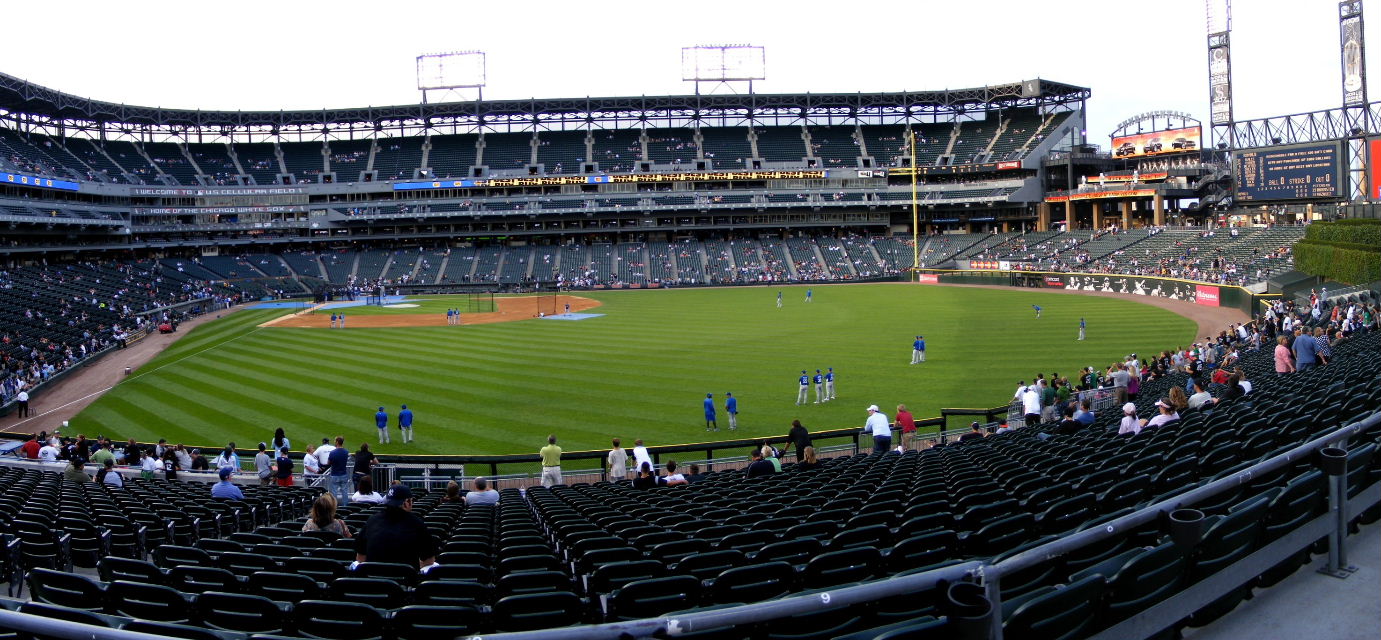 My work bought a bunch of tickets to take a visiting group to a White Sox game. The group cancelled, so they offered the tickets to staff for free. We grabbed five — the four of us and my sister. We rode down on a cushy coach bus with 43 other coworkers and their family members. Traffic was light and we arrived about an hour before game time, giving me time to stroll about and take some pictures.