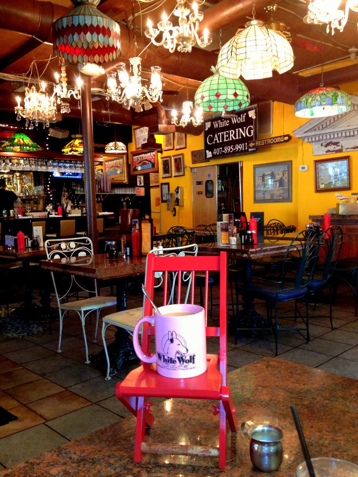 On the Saturday after the CPC conference, five of us took a late flight back home so we could spend much of the day relaxing in Florida. Everybody has talents that set them apart from the crowd. One of my boss’s talents is to find restaurants that have excellent food and interesting decor. He didn’t fail us. He directed us to the White Wolf Cafe in the “Bohemian” section of Orlando, far, far from Disney World.