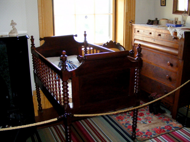 The Tafts sold the house in 1899. For the next 40 years it was owned by a succession of owners, the last of whom divided it up into apartments. As a result, only the family portraits on the walls and a few books in the parlor belonged to the family. It’s been furnished with period pieces according to a few descriptions in family diaries. William Howard Taft was born in the house, but it’s not known if the birth happened in the nursery or his parents’ bedroom.