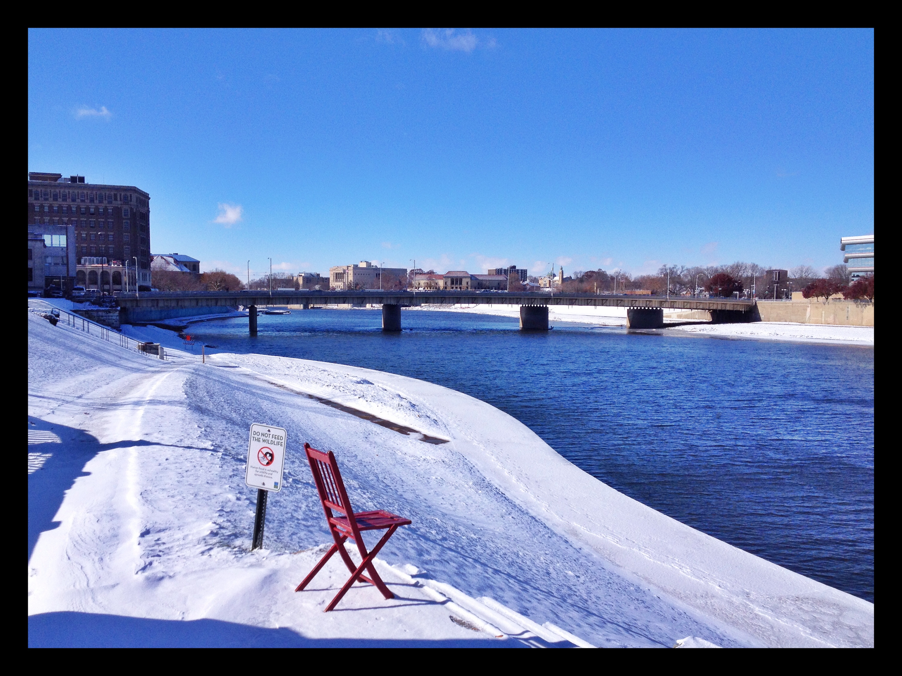 Four inches of snow and temperatures in the single digits in mid-November pretty much brought things to a halt in Dayton. For example, there was nobody in the park along the Great Miami River, right across the street from the sculpture.