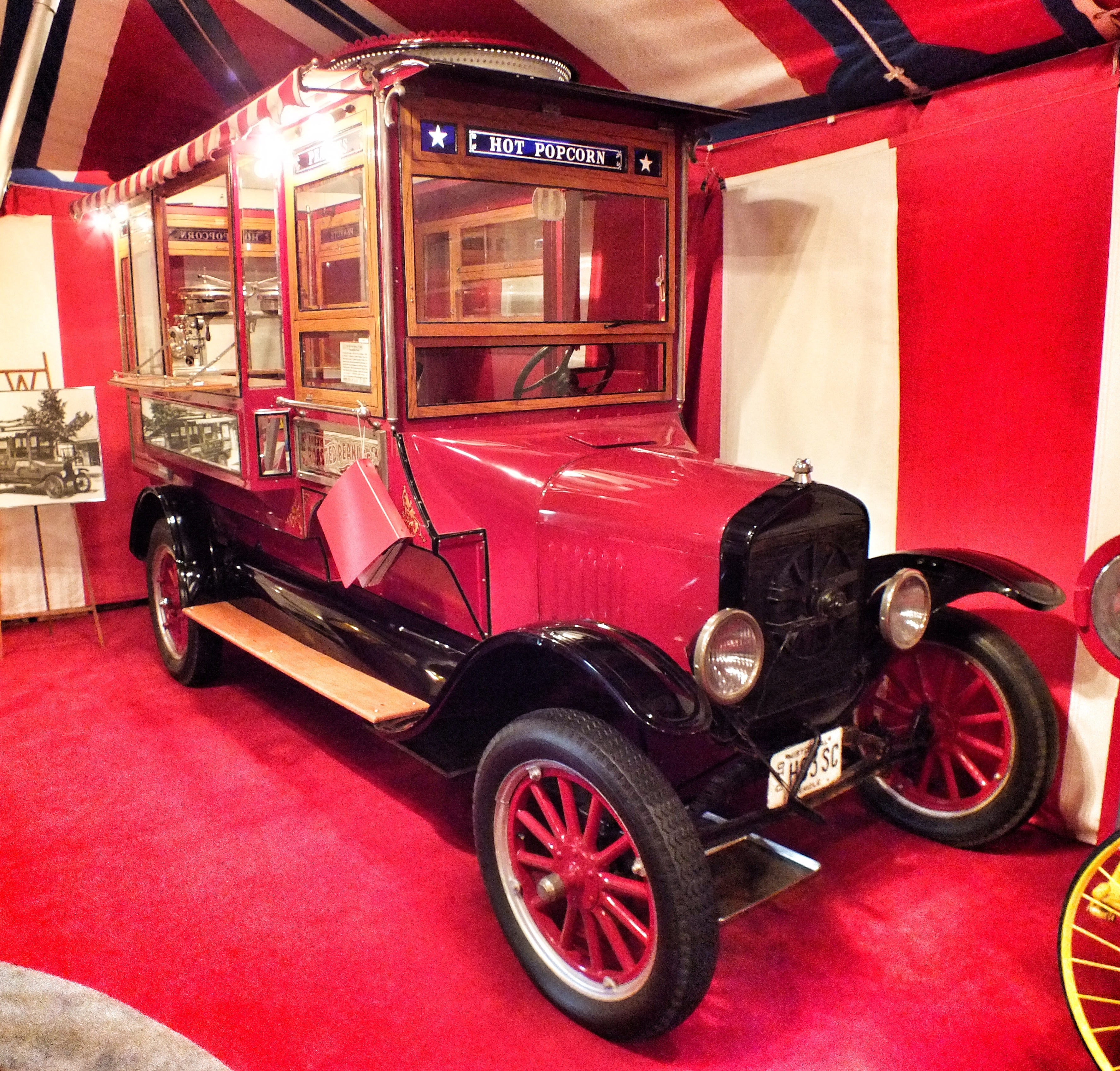 1927 Model T Cretors Popcorn Truck. It originally ran on white gas to drive the steam engine, pop the corn and operate the peanut roaster. There are only seven of these still in existence.