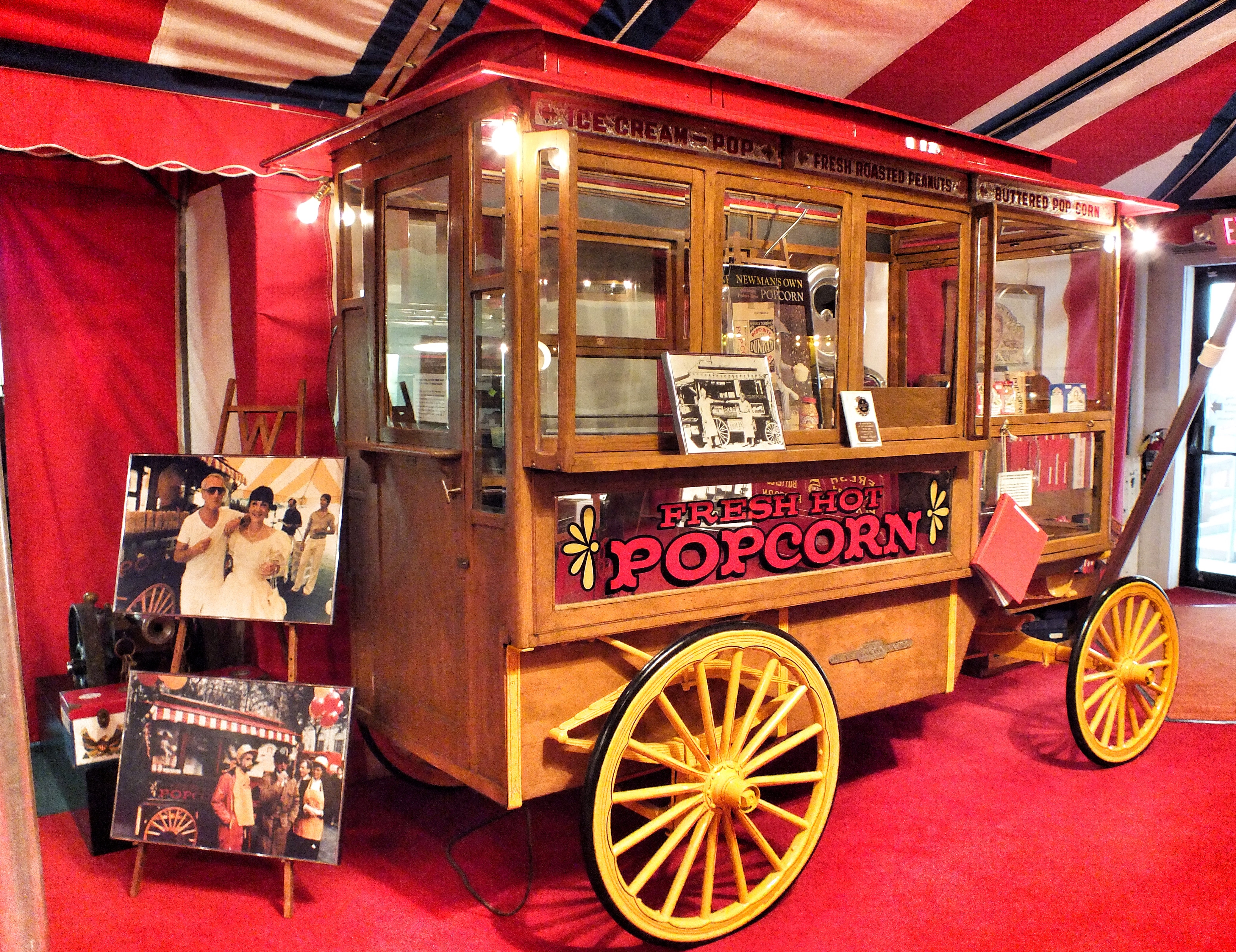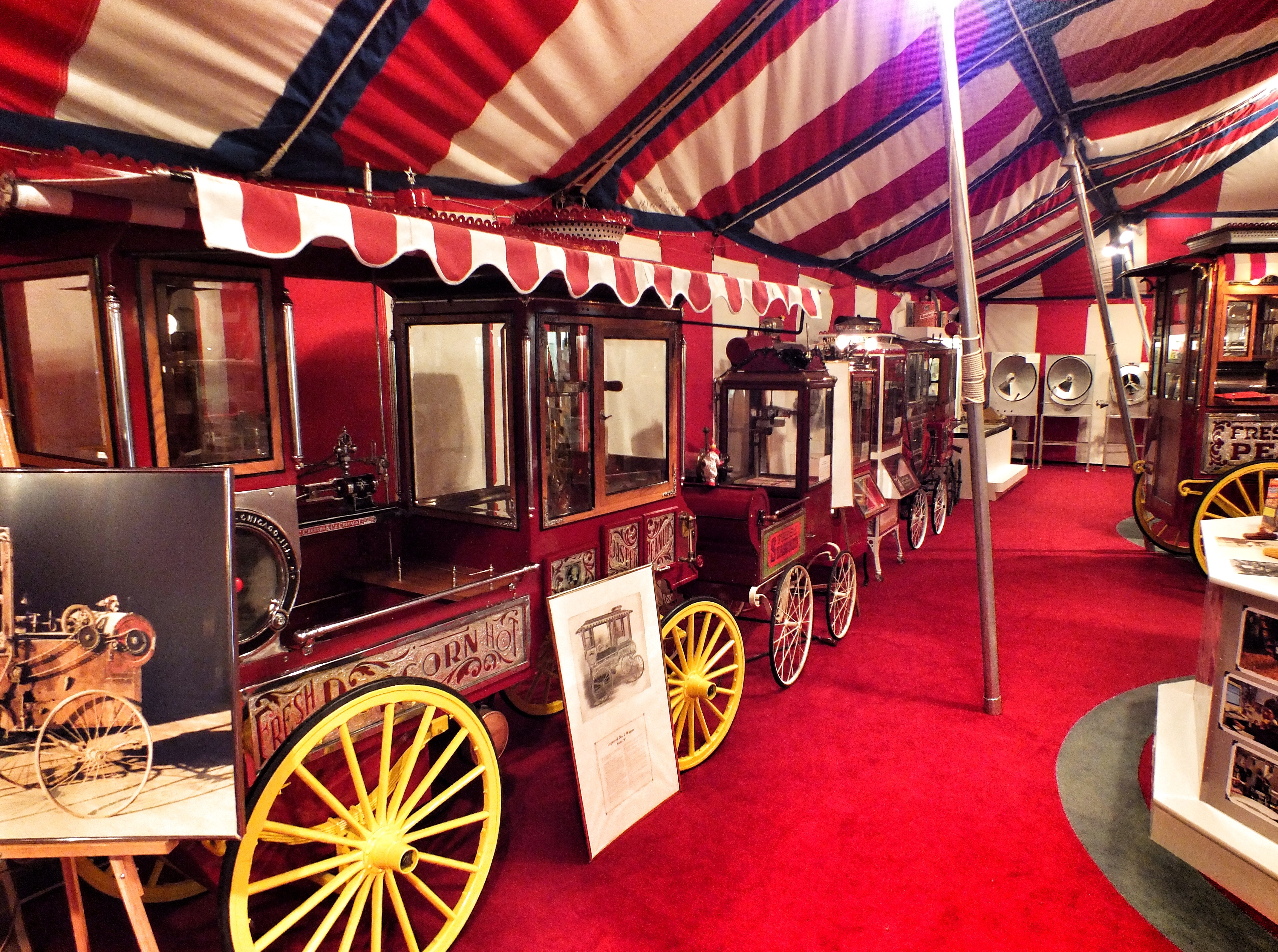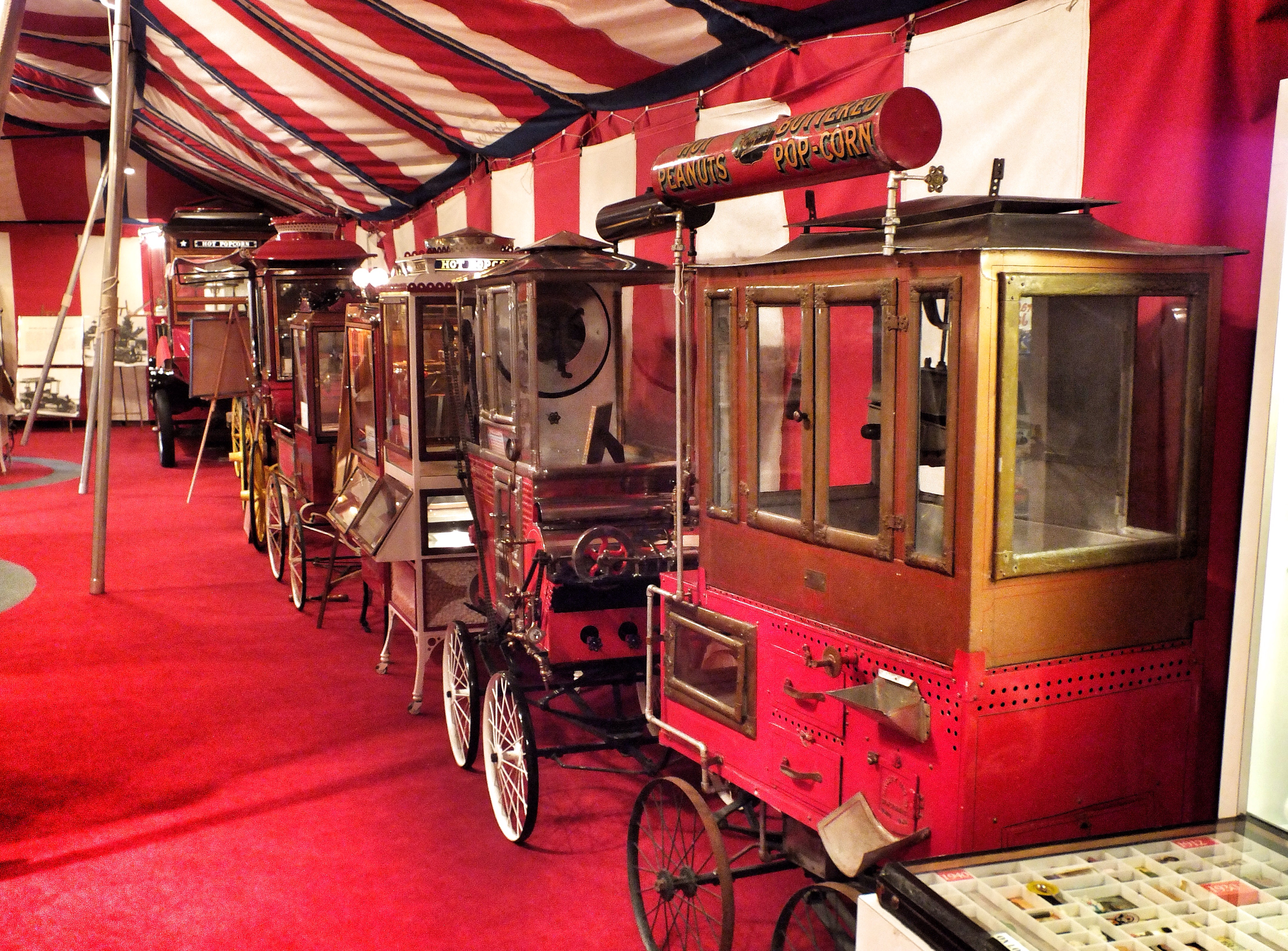 There were probably 50 popcorn machines in the room, of all sizes from trucks and wagons to table-top varieties. There were also displays about the history of popcorn as a snack, about popcorn packaging and, of course, about Wyandot Snack Company, the local popcorn company that owns the museum machines.