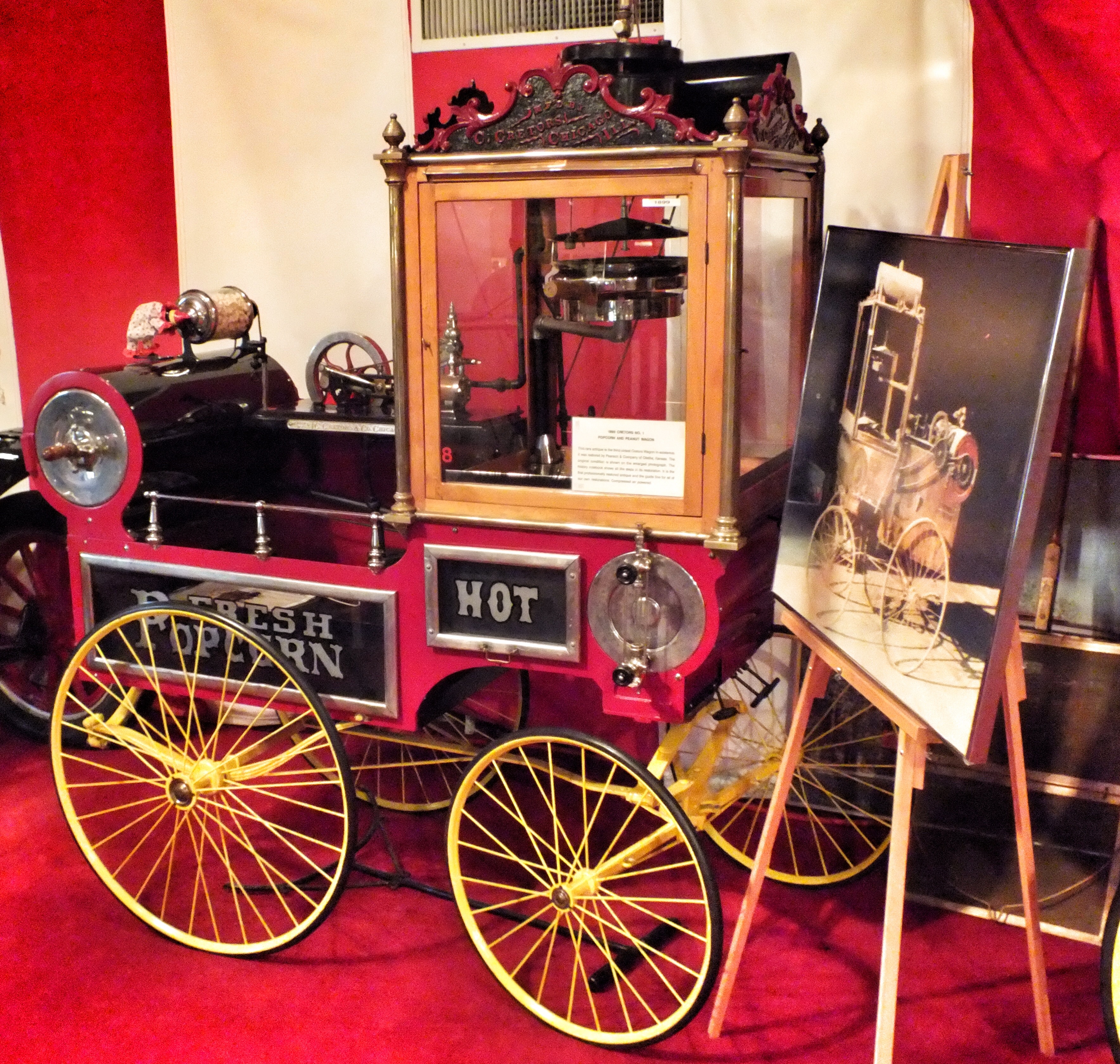 1899 Cretors Wagon. The photo shows what it looked like before it was restored.