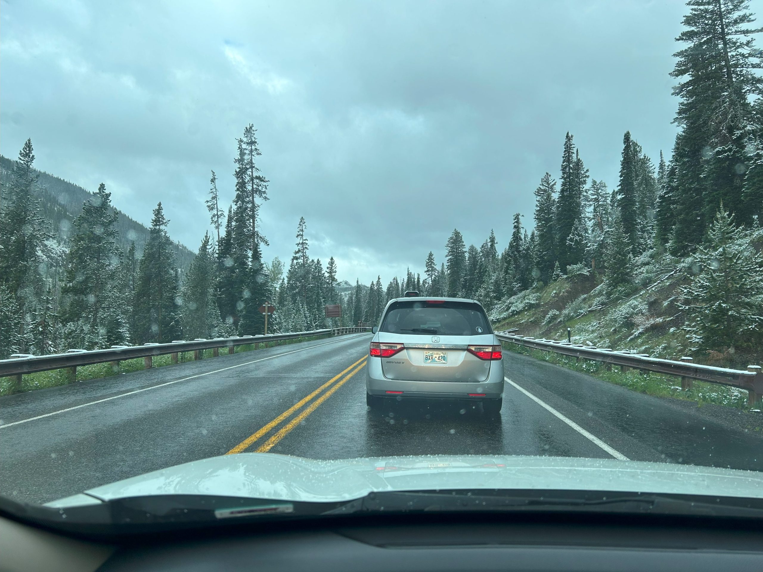 We were half a mile from the entrance when we came to a complete stop. A guy driving the other direction told us the road was temporarily closed for snow removal. We sat in place for about half an hour.