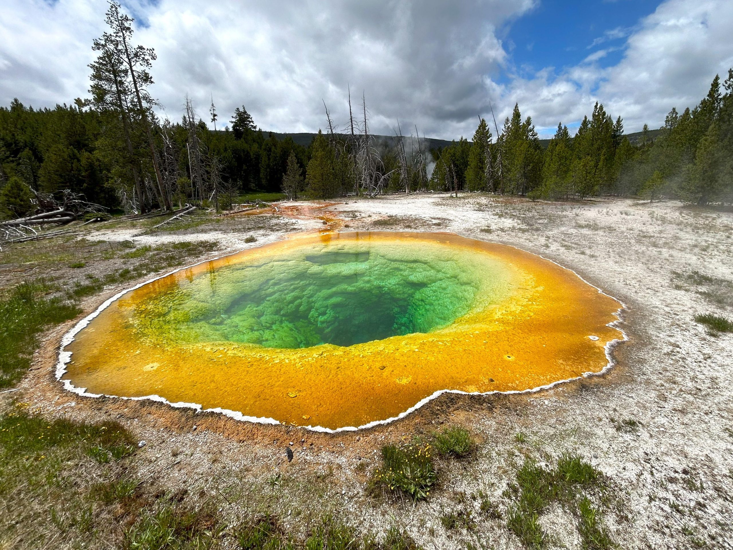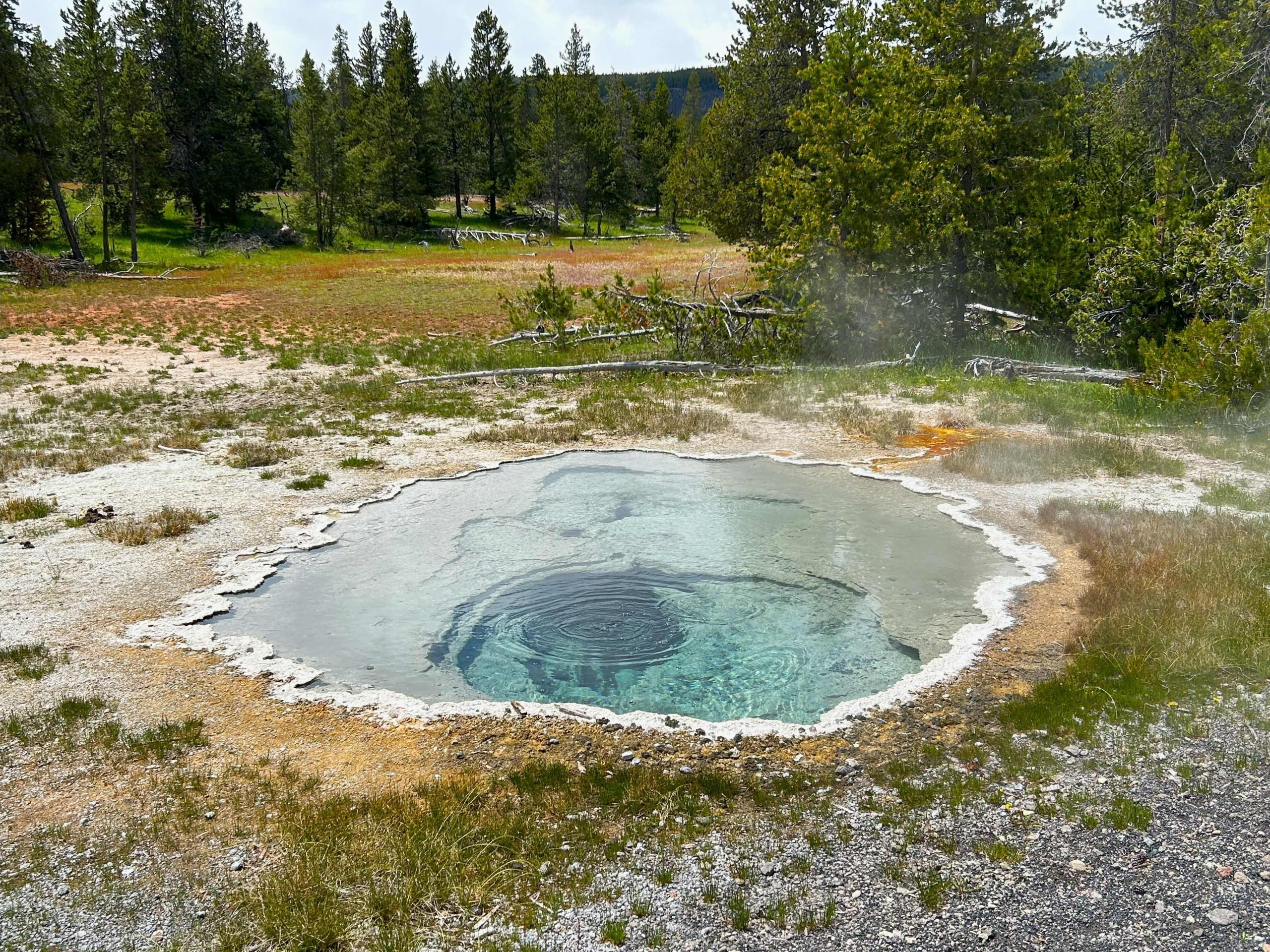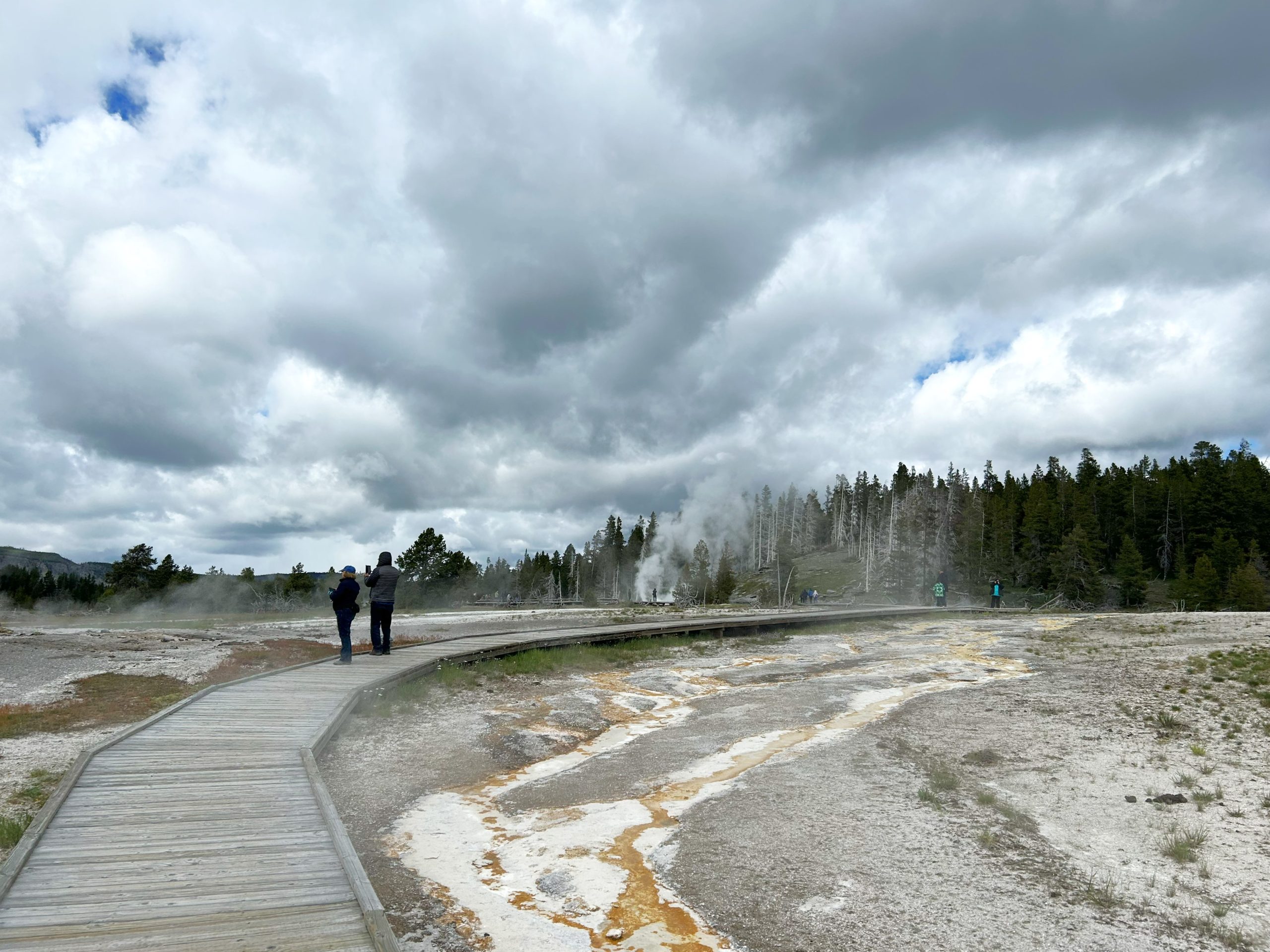 This is Morning Glory Pool. It looks pretty and remote. What you can’t see are the people lined up three deep on the boardwalk taking selfies. Or the woman not far away who was blocking traffic so she could take videos of her daughters doing cartwheels. On the boardwalk. In an area where falling off the boardwalk could kill you.