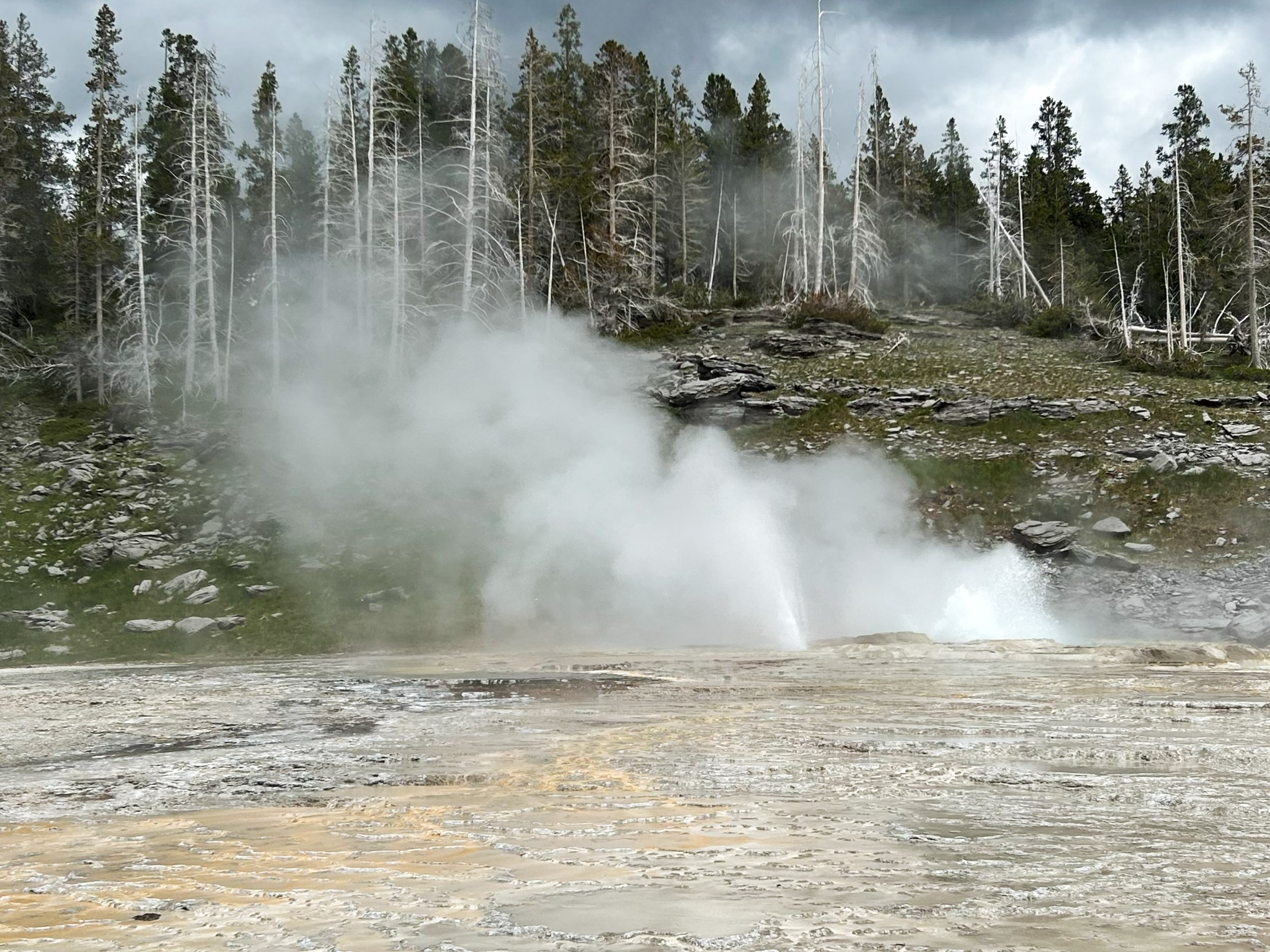 That’s the old lodge in the background. In the foreground is Beehive Geyser when it’s not erupting.
