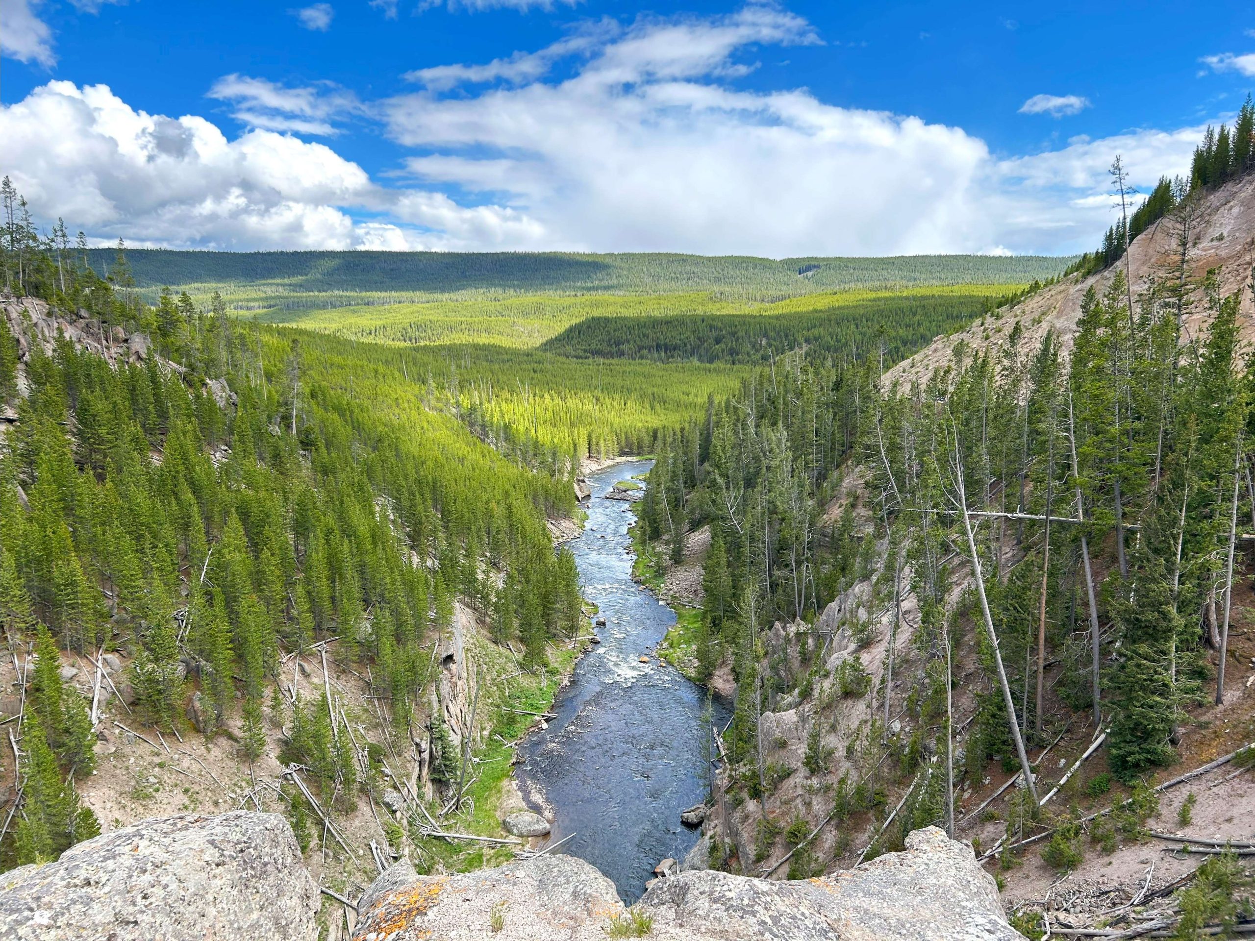 Eventually we cleared the busy area and were able to enjoy the scenery again. This is Gibbon Falls. I’ll say this about Yellowstone. It lives up to they hype. Features like this — which aren’t even famous — are scattered all over the park.