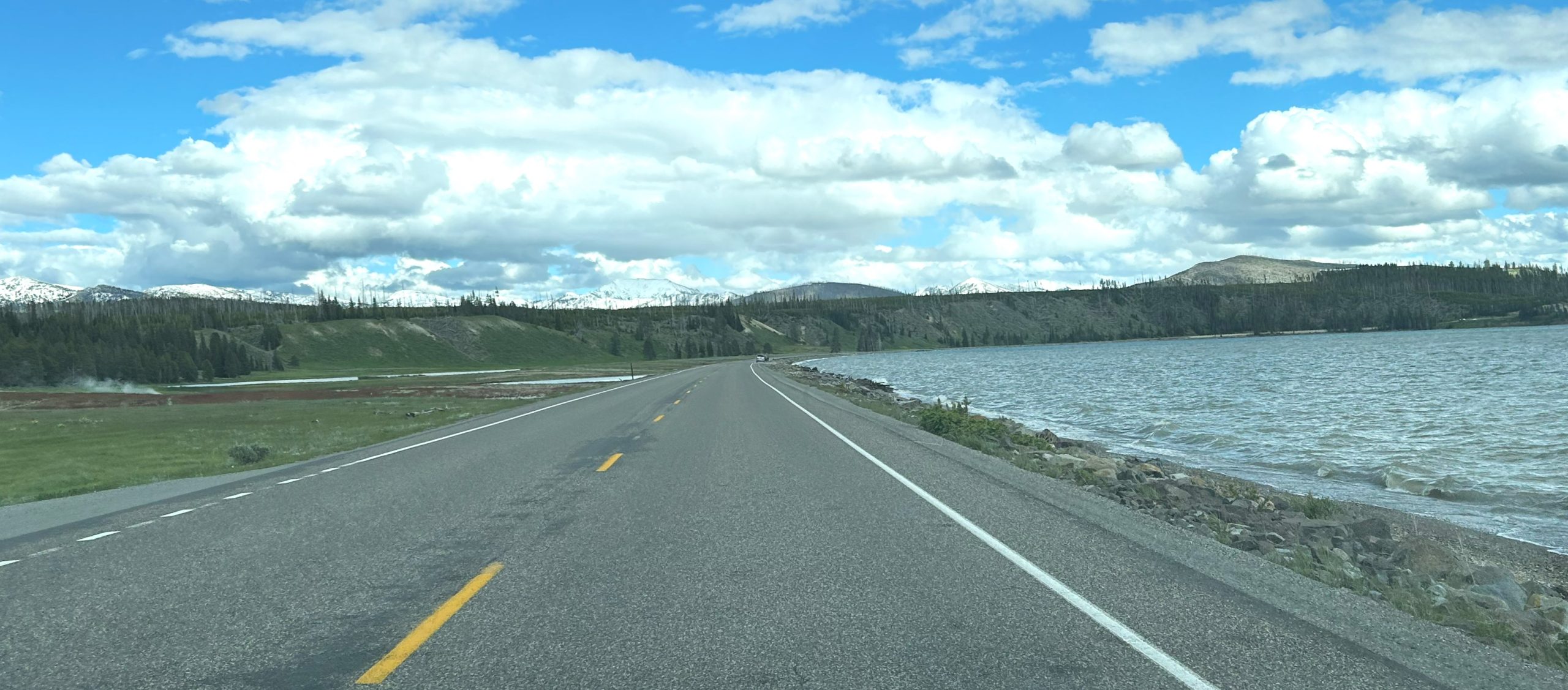 By this time it was already late in the afternoon. We drove back past Yellowstone Lake, stopping only long enough to see the Grizzly Bear (see separate post). We then had the long, but pretty, drive back to Cody.
